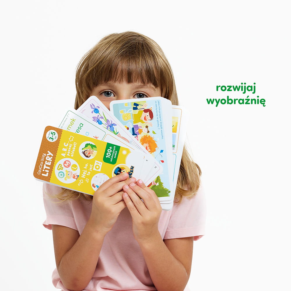 - Przyjrzyjcie się małym i dużym literom na kartach, obrysujcie je palcem, a nawet zapiszcie w zeszycie. Te zabawy uczą rozpoznawania ich kształtów.