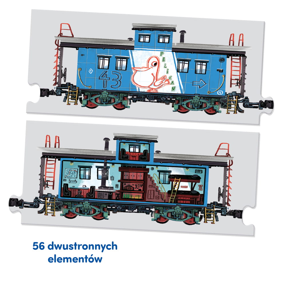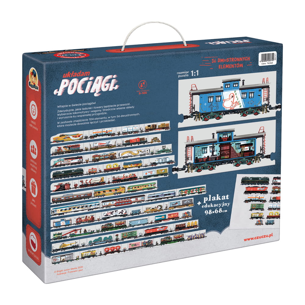 Kreatywne puzzle możecie układać jak tylko chcecie. Obejrzyjcie dokładnie ilustracje i zajrzyjcie do środka pociągów.