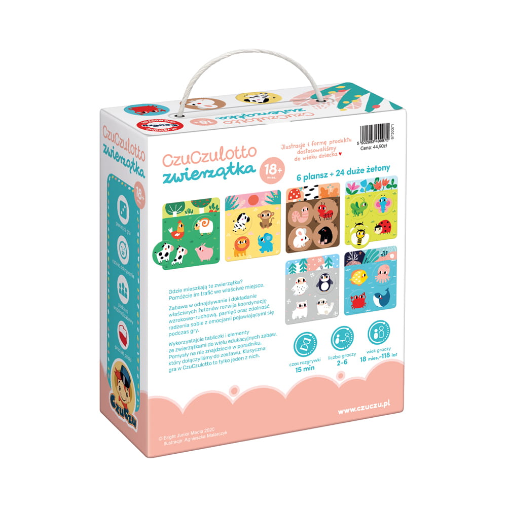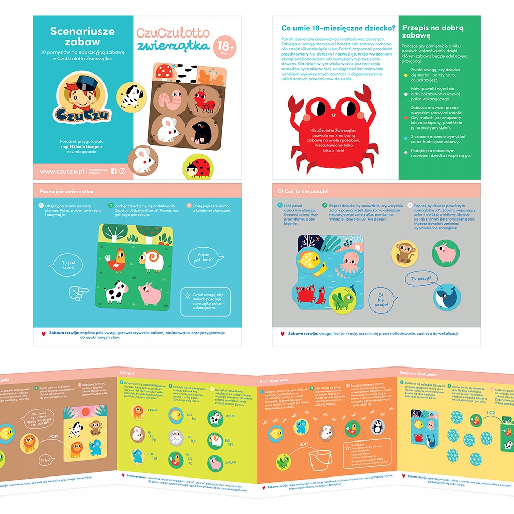 Zanim maluch opanuje reguły gry, możecie bawić się inaczej: CzuCzulotto sprawdzi się jako układanka i inspiracja do wielu edukacyjnych aktywności. Ich poziom trudności możecie łatwo dostosować do wieku dziecka. Co więcej, w zestawie znajdziecie poradnik pełen pomysłów na rozwijające aktywności. Z pewnością odkryjecie swój ulubiony przepis na zabawę!