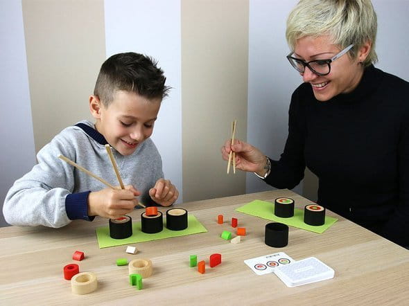 Gra zręcznościowa polegająca na przygotowaniu sushi według określonego na karcie zestawów składników w możliwie najszybszym czasie. Gra uczy kreatywności, zręczności, koncentracji i rozwija umiejętności tworzenia sushi, w której dwóch szefów kuchni rywalizuje o pyszne maki. Muszą oni skomponować sushi pokazane na karcie - używając tylko i wyłącznie pałeczek bambusowych. Wygrywa ten kto pierwszy bezbłędnie przygotuje wszystkie wskazane na karcie maki. Gra rozwija koordynację, zwinność palców i zamiłowanie do sushi dla smakoszy w wieku 6 lat i starszych. Wspaniała gra sensoryczna i zabawa dla całej rodziny! Produkt zdobył wiele nagród, w tym prestiżową w Polsce nagrodę Zabawka Roku!