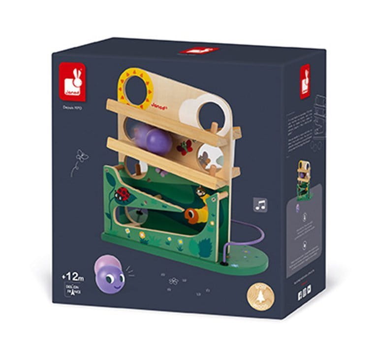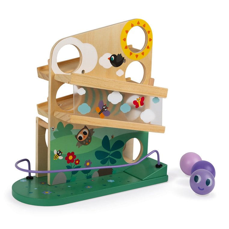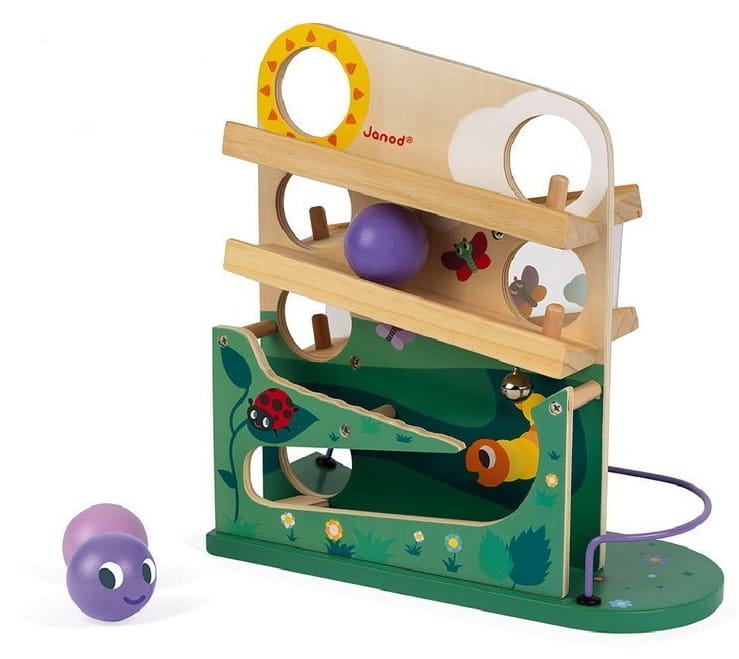 Drewniany kulodrom Gąsienica francuskiej marki JANOD to idealna zabawka dla dzieci od 1. roku życia.