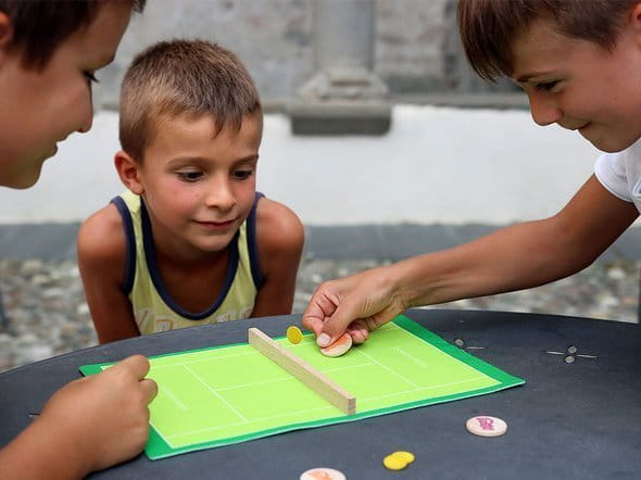 Instrukcja: Umieść filcowy kort na powierzchni i wygładź go dłońmi. Umieść drewniany klocek "siatkę" nad linii oznaczającą środek boiska. Wybierz kolor dysku oraz swoja stronę boiska po której chcesz grać (nie ma zmiany stron). Zwycięzcą zostaje gracz, który zdobędzie najwięcej punktów w wyznaczonym czasie. Gra Tenis posiada 3 różne poziomy trudności, odpowiednie zarówno dla dzieci, jak i dorosłych - rozgrywka dla początkujących, gra w debla, tenis dla zaawansowanych - Pełna instrukcja gry znajduje się w pudełku. Produkt włoskiej marki Milaniwood która od 1924 roku tworzy bardzo kreatywne, wyjątkowe i niebanalne gry drewniane wykonane z certyfikowanego drewna FSC™. Gry Milaniwood są certyfikowane, bezpieczne i przeznaczone dla całej rodziny. Wyprodukowane w 1000% we Włoszech i w zgodzie z europejskimi standardami bezpieczeństwa zabawek.