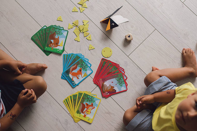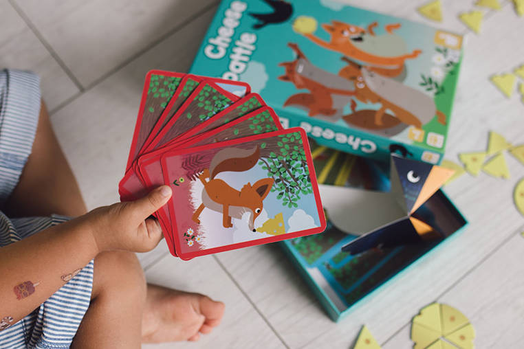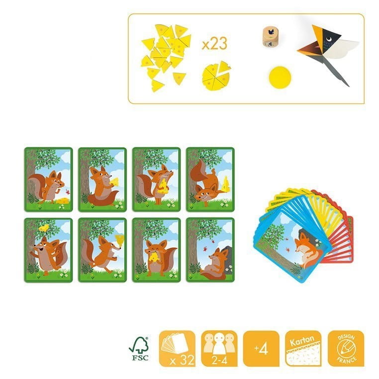 - 32 karty z ilustracjami lisków i ramkami w 4 różnych kolorach (żółtym, czerwonym, zielonym i niebieskim)