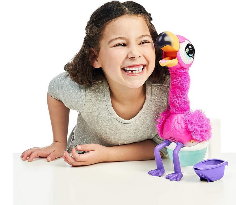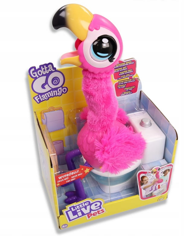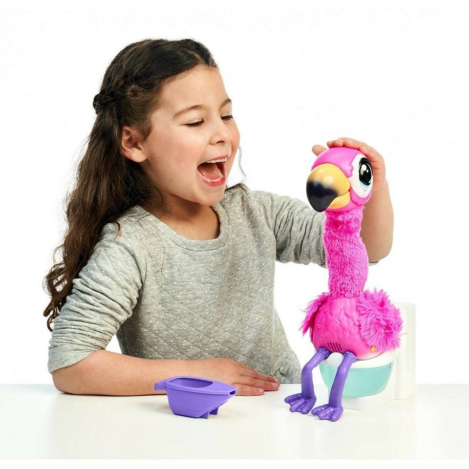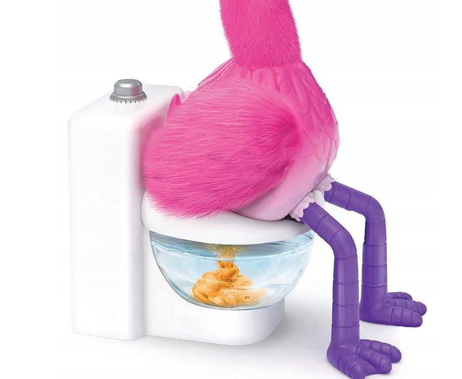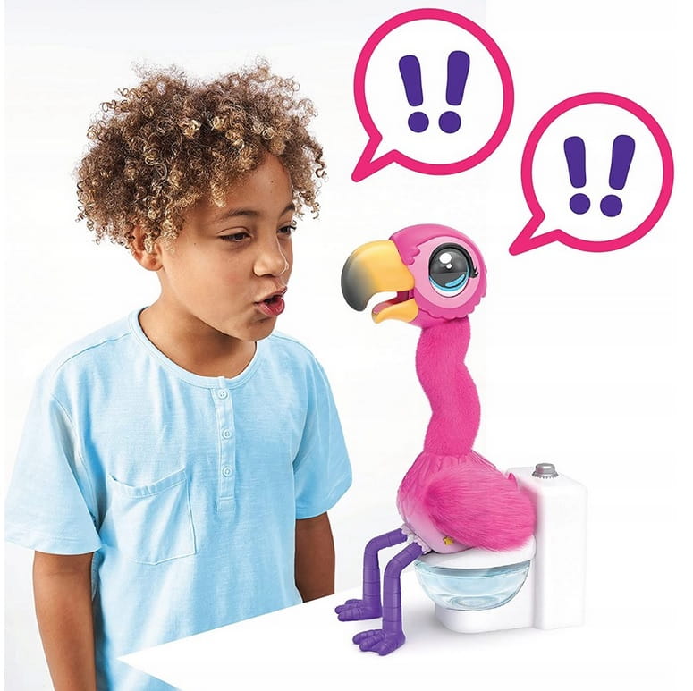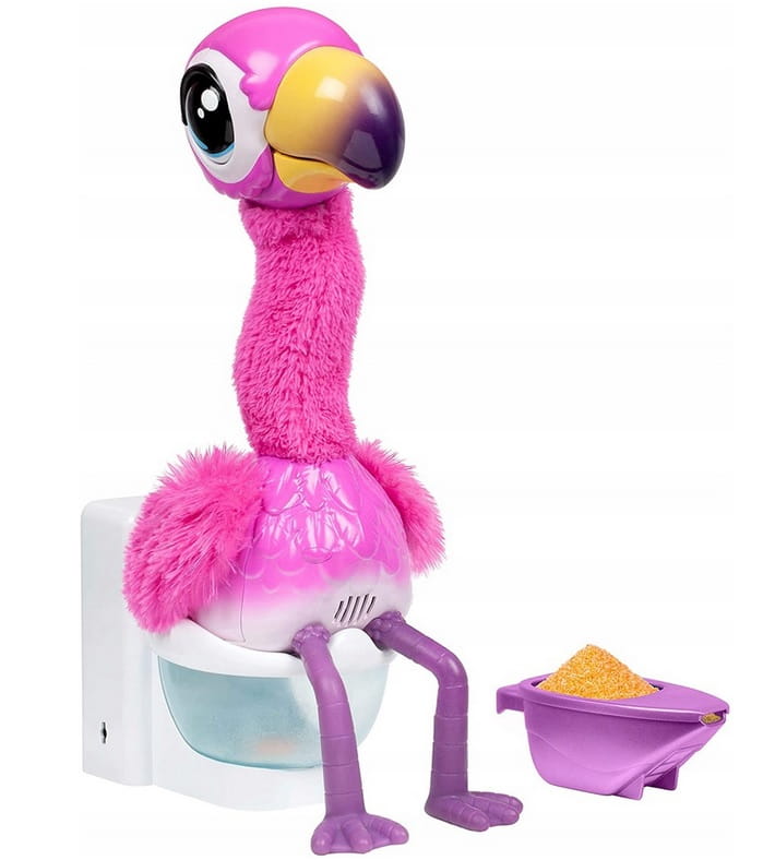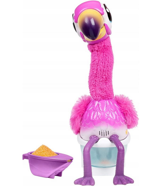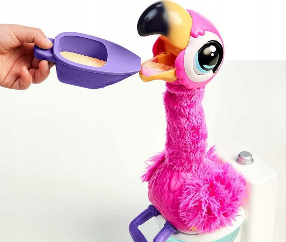 Nakarm Flaminga specjalnym pokarmem i zobacz co się będzie działo! Po wsypaniu pokarmu specjalną szufelką do dzióbka Flaminga musi on go przesunąć w dół tułowia więc jego szyja zaczyna falować.