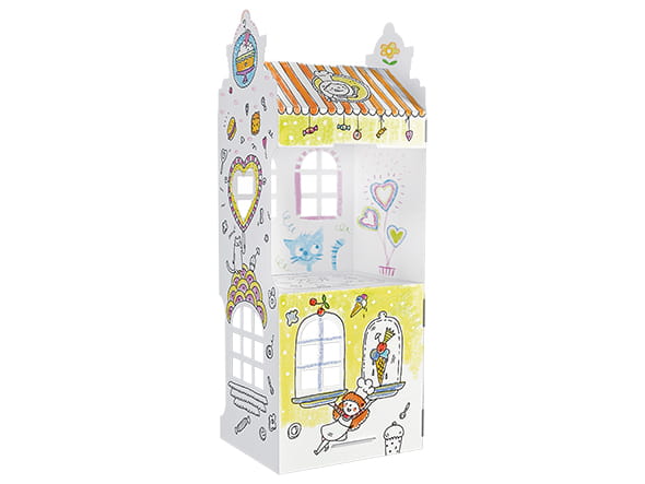 Wspaniały kartonowy domek, który zapewni mnóstwo zabawy. Można go pokolorować kredkami, mazakami lub farbami, a po złożeniu bawić się godzinami! Masz ochotę na odrobinę słodyczy? Ten niezwykły domek pokryty jest lukrem, czekoladą i słodkimi owocowymi polewami. To Ty nadajesz mu smaki i kolory.