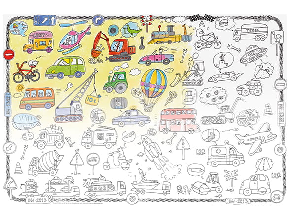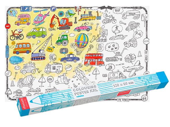 A czy znasz już wszystkie pojazdy? Czy lubisz jeździć z rodzicami w samochodzie? Czy marzysz o tym, żeby polecieć balonem? Jakie jeszcze pojazdy znasz? Prawie wszystkie zmieszczą się na dużym plakacie! Pokoloruj je farbami, kredkami lub mazakami.