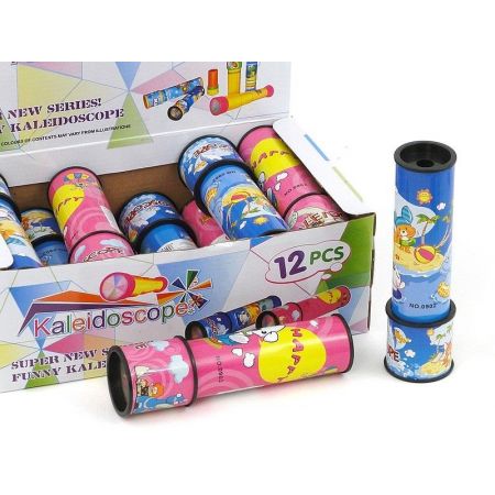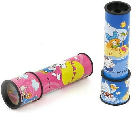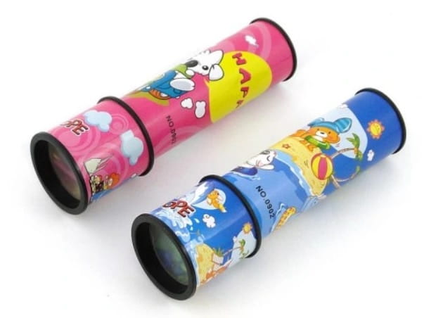 Spojrzyj do kalejdoskopu, aby zobaczyć kolorowe plamy. Pokręć i zobacz, jak się zmieniają.