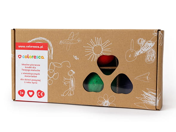 Z kredkami COLOResca żaden maluch nie jest „za mały” żeby rozpocząć swoją artystyczną przygodę. Wszystko za sprawą ich kształtu oraz rozmiaru. Kredki dla malucha wyglądają, jak duże, kolorowe jajka, którymi da się rysować po kartce. Do rysowania nie potrzeba używać zbyt dużo siły, ponieważ są na tyle miękkie, żeby zostawiać satysfakcjonujące malucha kreski.