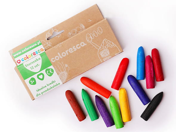 Z kredkami COLOResca żaden maluch nie będzie się nudził. Kredki Starszaka dostępne są w 12 kolorach i idealne są dla starszych dzieci. Są to grube kredki (średnica ok. 14 mm) o lekko chropowatej powierzchni, charakteryzujące się dużą wytrzymałością - bardzo trudno je połamać. Pamiętajmy, że rysowanie ma wiele zalet. Pomaga dzieciom w rozwoju koordynacji wzrokowo-ruchowej, angażuje mózg i wpływa na orientację w przestrzeni. Wzmocnieniu ulega koncentracja oraz umiejętność skupienia się i bycia cierpliwym. Systematyczne ćwiczenie rysunku przez Twoją pociechę sprawi, że rozwinie swoją wyobraźnię. Wypracowanie prawidłowego chwytu przy rysowaniu ułatwi dziecku naukę pisania w przyszłości. Nasze kredki to nie tylko dobra zabawa, ale i też pożyteczne narzędzie dla Twojego malucha.