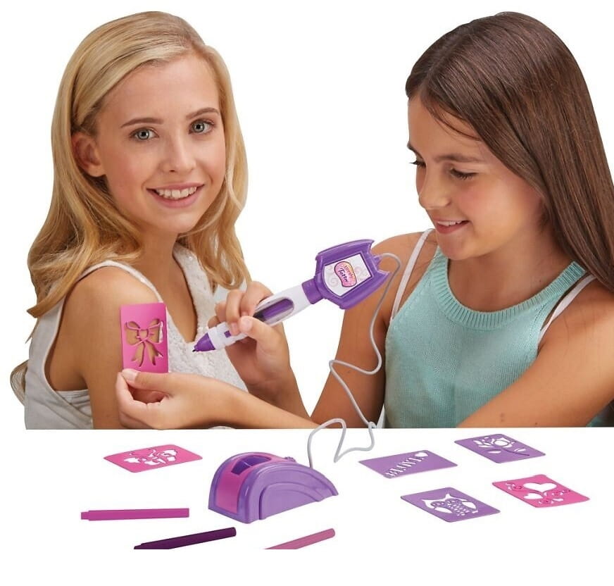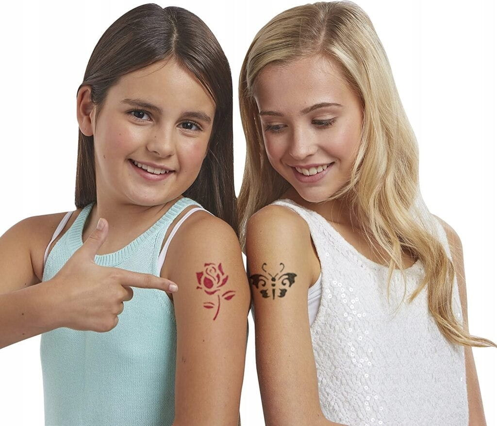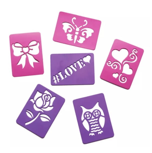 W zestawie znajduje się 6 modnych szablonów i wkłady w 3 kolorach. Wybierz szablon, kolor wkładu i zacznij tworzenie tatuażu!