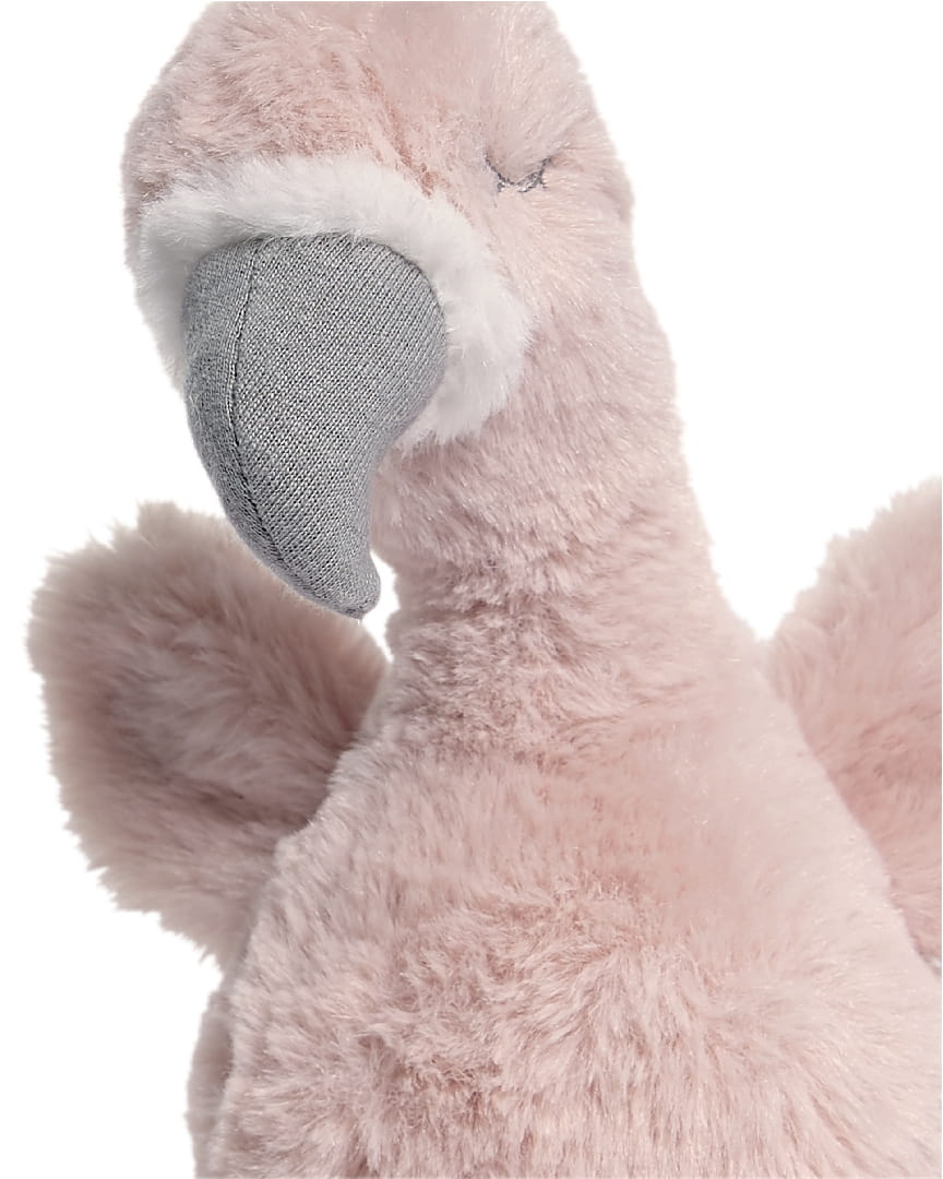 Maskotka Mamas&Papas Flaming wykonana została z niezwykłą starannością, z wyjątkowo przyjemnej w dotyku dzianiny jersey. Jej unikalny design wzbogacono luksusowymi detalami ze sztucznego futerka. Pluszak jest naprawdę miękki i delikatny dla wrażliwej skóry malucha, który będzie mógł się do niego przytulać o każdej porze dnia i nocy. Sympatyczna aparycja Flaminga, jego oryginalny kształt i uwielbiany przez dzieci, różowy kolor sprawią, że pluszak sprosta oczekiwaniom nawet najwybredniejszych małych poszukiwaczy przygód.