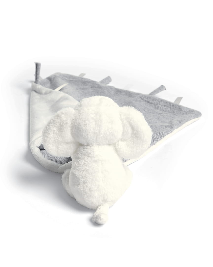 Maskotka uspokajacz Mamas&Papas Słonik stanie się prawdziwym przyjacielem Twojego maleństwa. Luksusowa, przyjemna w dotyku mini kołderka wykonana została z miękkiego, sztucznego futerka, dlatego idealnie sprawdzi się podczas drzemki. Wszyte w nią frędzle z teksturowanej tkaniny z pewnością okażą się intrygujące dla małych rączek, dopiero poznających wielki świat.