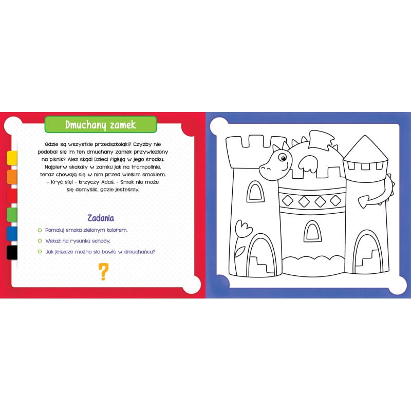 W tej książeczce dzieci mogą pokolorować obrazki i przeczytać m.in.: