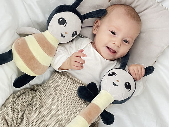 Oto Piapi - pierwszy przyjaciel lub przyjaciółka Twojego dziecka. Wierny towarzysz każdej chwili zabawy, zasypiania Twojego dziecka. Pszczółka maskotka dla dziecka jest szyta ręcznie z certyfikowanych, trwałych oraz bezpiecznych materiałów. Dobro również objawia się w jej oczkach, które razem z oczkami Twojego dziecka będą ciekawie patrzyły na świat. Właściwości produktu: