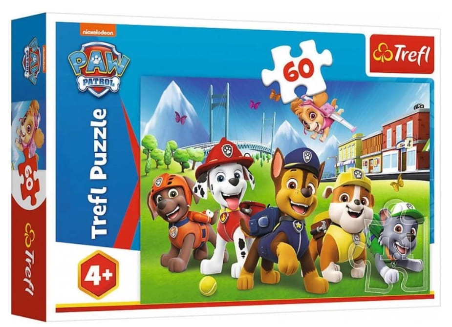 Zestaw puzzli składa się z 60 elementów i umożliwia ułożenie niezwykle barwnego obrazka przedstawiającego bohaterów uwielbianej przez najmłodszych bajki - Psi Patrol.