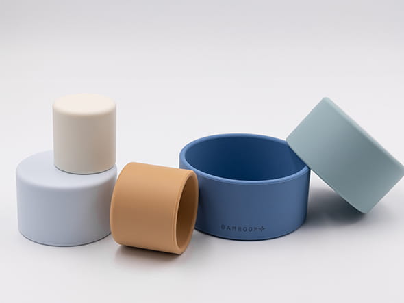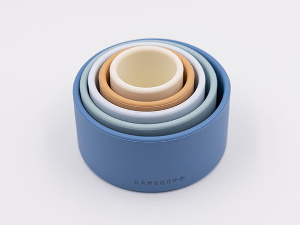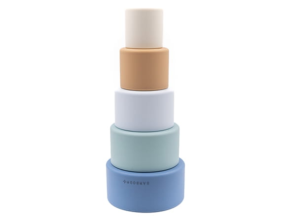 Silikonowa wieża sensoryczna marki Bamboom składająca się z pięciu elementów różniących się kolorem, wielkością. Silikonowe elementy w kształcie walca intrygują i zachęcają do eksperymentowania. Idealnie pasują do małych rączek trenujących swą sprawność. Elementy mogą być układane jeden na drugim, mogą też służyć jako zabawki do wody i piasku a także jako gryzaczki. Dopasowując jeden element do drugiego dziecko ćwiczy koordynację oko-ręka i precyzję ruchów a także cierpliwość i koncentrację. Wieża z silikonowych elementów w kształcie walca to świetny pomysł na prezent dla niemowlaka, a także nietuzinkowy prezent na baby shower.