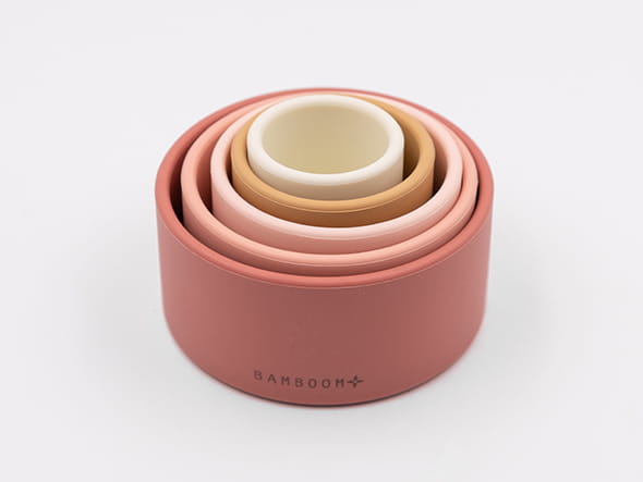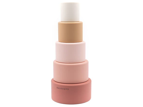 Silikonowa wieża sensoryczna marki Bamboom składająca się z pięciu elementów różniących się kolorem, wielkością. Silikonowe elementy w kształcie walca intrygują i zachęcają do eksperymentowania. Idealnie pasują do małych rączek trenujących swą sprawność. Elementy mogą być układane jeden na drugim, mogą też służyć jako zabawki do wody i piasku a także jako gryzaczki. Dopasowując jeden element do drugiego dziecko ćwiczy koordynację oko-ręka i precyzję ruchów a także cierpliwość i koncentrację. Wieża z silikonowych elementów w kształcie walca to świetny pomysł na prezent dla niemowlaka, a także nietuzinkowy prezent na baby shower.