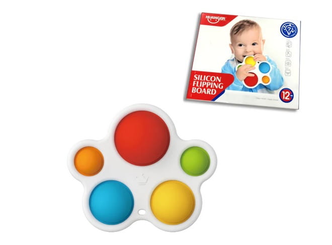 W plastikowej ramce umieszczone jest 5 silikonowych krążków w podstawowych kolorach.