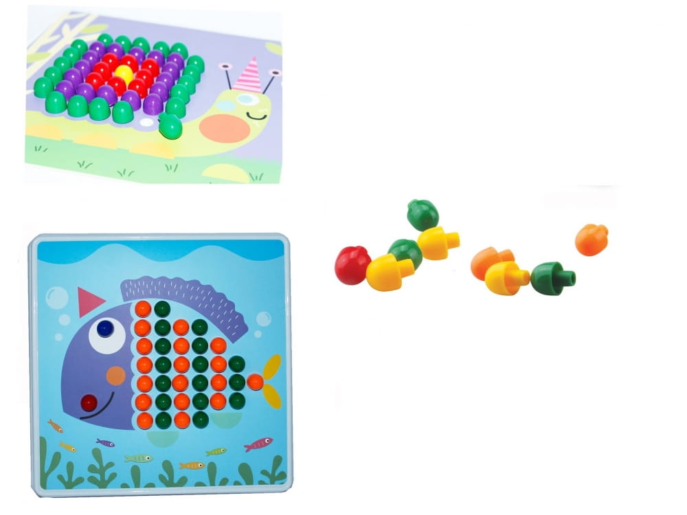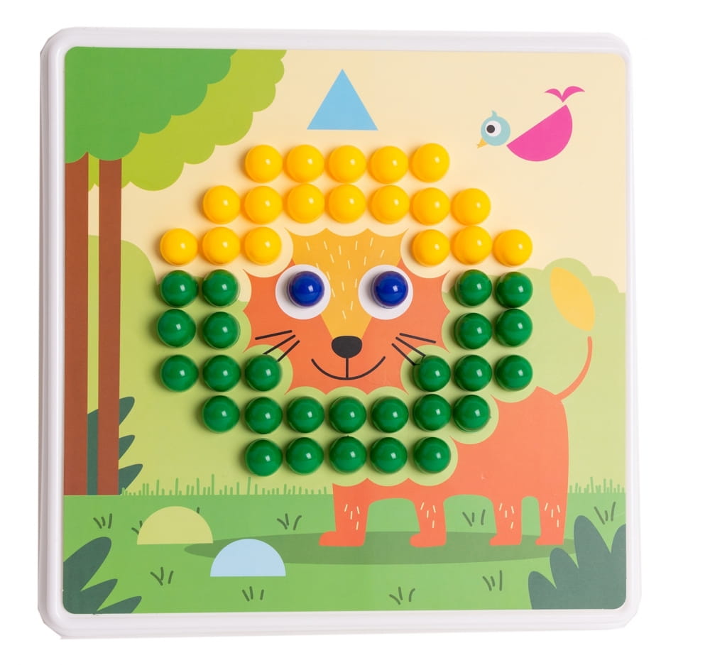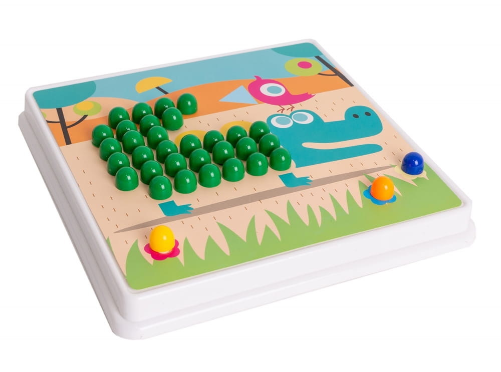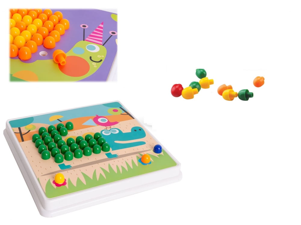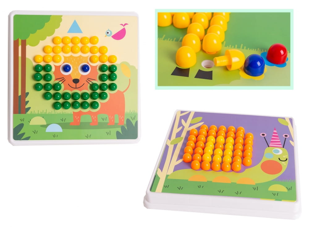 Mozaika - układanka z kolorowymi pinezkami to zabawka rozwijająca kreatywność dzieci, kształtująca wyobraźnię, ucząca wytrwałości i koncentracji oraz umiejętności manualnych. Układanka stymuluje motorykę małej ręki - sprawność dłoni i paluszków. Żywe kolory oraz różnorodność obrazków zachęca dziecko do zabawy.