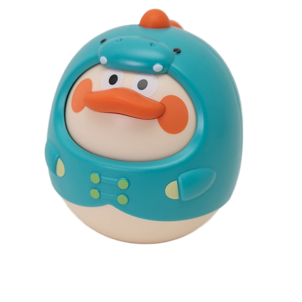 Zabawka posiada uroczy kaczy dzióbek, duże rumieńce na policzkach i występuje w jasnozielonym stroju smoka. Kaczuszka pomaga w rozwoju koordynacji ruchowej oraz zmysłów wzroku, dotyku i słuchu. Kołysząc się na wszystkie strony, rusza buzią i wydaje odgłosy dzwoneczków, przez co doskonale stymuluje i rozwija koordynację ruchowo-wzrokowo-słuchową.