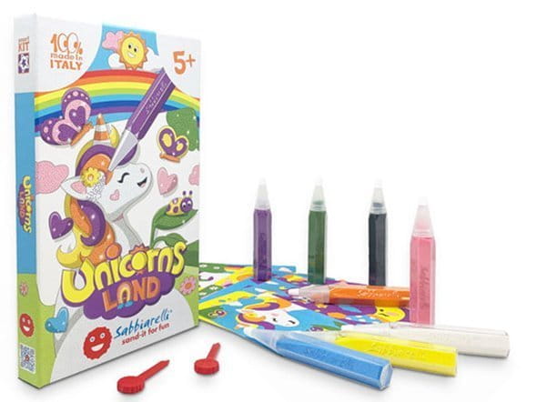 Produkt włoskiej marki Sabbiarelli która od 2012 roku rozwija i produkuje kreatywne zabawki do malowania piaskiem powstałym z marmuru ze słynnej Carrary. Te niesamowicie pomysłowe zestawy do kolorowania w 100% są wyprodukowane we Włoszech i przeznaczone dla dzieci w wieku od 3 do 12 lat. Produkty Sabbiarelli są bezpieczne, nietoksyczne i zgodne z europejskimi standardami bezpieczeństwa zabawek.
