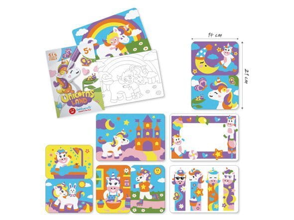 - bardzo ciekawy, kreatywny i edukacyjny zestaw do kolorowania z ulubionymi jednorożcami