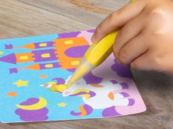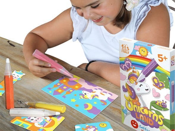 Bardzo pomysłowy, kreatywny i wyjątkowy zestaw artystyczny dla dzieci do kolorowania magicznym piaskiem pochodzącym ze zmielonego marmuru. Magiczny piasek do kolorowania Sabbiarelli to zestaw artystyczny przeznaczony dla dzieci, w której bezpośredni kontakt z piaskiem stanowi aspekt edukacyjny w odniesieniu do wykorzystanych materiałów. Praca z piaskiem podczas kolorowania rysunków jest nie tylko szczególnie przyjemna dla dzieci, ale również pozwala im rozwijać wyobraźnie i tworzyć piękne obrazki bez użycia nożyczek, kleju lub farb. Ten zestaw kreatywny dla chłopca i dziewczynki została wykonany tylko i wyłącznie z bezpiecznych i nietoksycznych materiałów. Piaskowe kolorowanki Sabbiarelli to idealny pomysł na zabawę z przyjaciółmi, a także fajny pomysł na prezent.