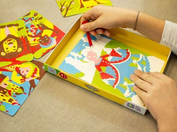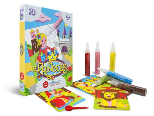 Bardzo pomysłowy, kreatywny i wyjątkowy zestaw artystyczny dla dzieci do kolorowania magicznym piaskiem pochodzącym ze zmielonego marmuru. Magiczny piasek do kolorowania Sabbiarelli to zestaw artystyczny przeznaczony dla dzieci, w której bezpośredni kontakt z piaskiem stanowi aspekt edukacyjny w odniesieniu do wykorzystanych materiałów. Praca z piaskiem podczas kolorowania rysunków jest nie tylko szczególnie przyjemna dla dzieci, ale również pozwala im rozwijać wyobraźnie i tworzyć piękne obrazki bez użycia nożyczek, kleju lub farb. Ten zestaw kreatywny dla dziewczynki została wykonany tylko i wyłącznie z bezpiecznych i nietoksycznych materiałów. Piaskowe kolorowanki Sabbiarelli to idealny pomysł na zabawę z przyjaciółmi, a także fajny pomysł na prezent.
